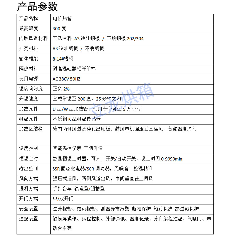 換向器、變壓器鐵芯、線圈涂層烘干,噴涂電柜和零件烘干、固化,鑄件退火,電機(jī)維修等多種用途。也可按客戶要求