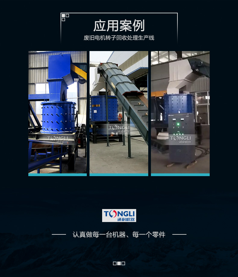 廢舊電機(jī)(馬達(dá))中很有較多的銅和鋁等材料,回收利用價(jià)值較,通利機(jī)器轉(zhuǎn)子破碎機(jī)設(shè)備破碎比,前期對廢舊電機(jī)轉(zhuǎn)子進(jìn)行破碎,后半程將破碎料里面的各類金屬分類回收,然后產(chǎn)品附加值,利潤可觀。